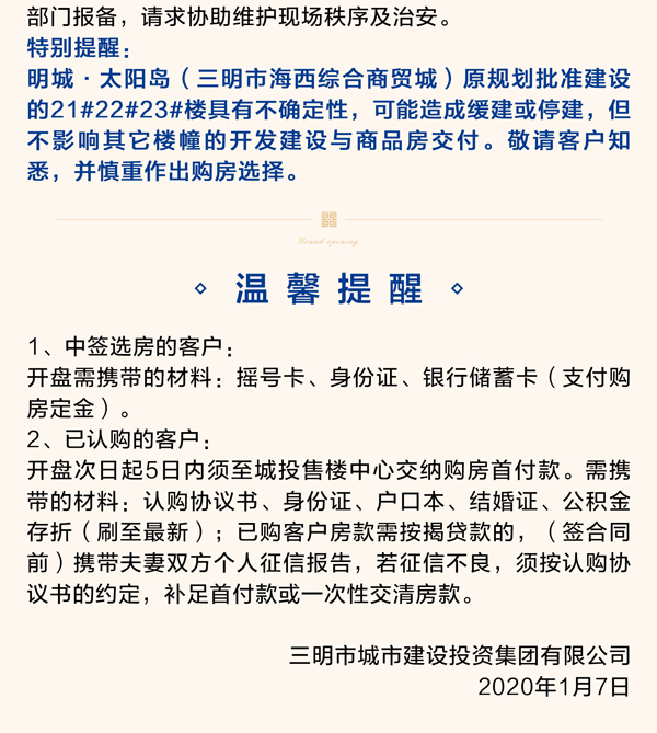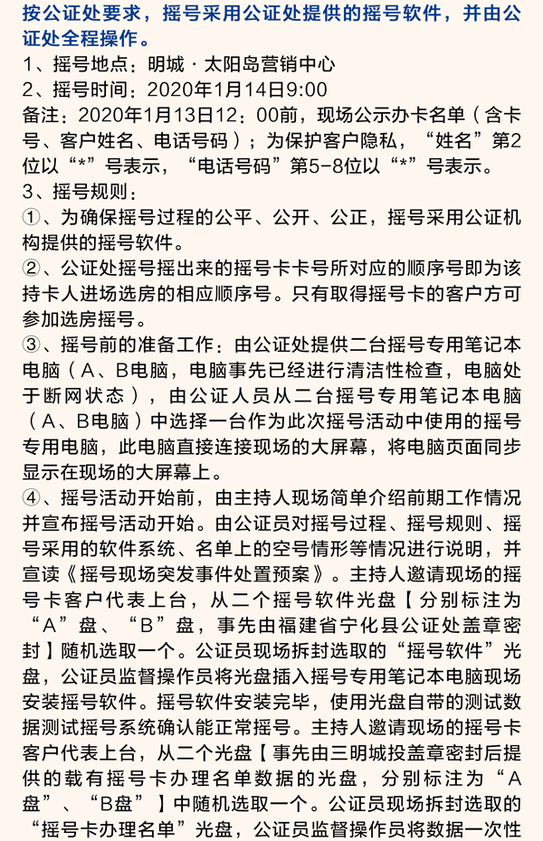 明城·太阳岛13幢15幢开盘“摇号卡办理名单”公示