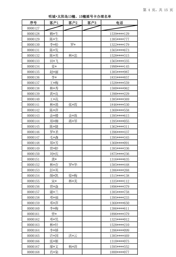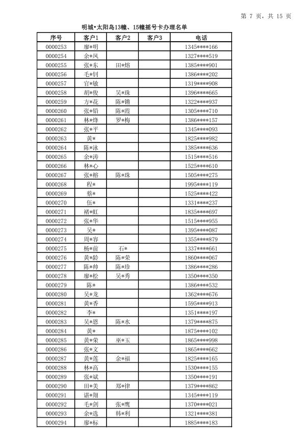 明城·太阳岛13幢15幢开盘摇号卡中签名单公示