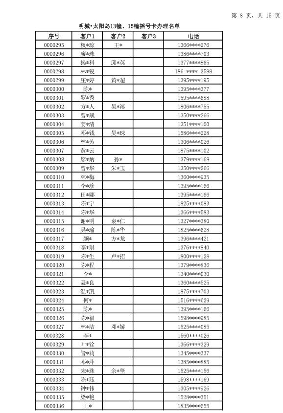 明城·太阳岛13幢15幢开盘“摇号卡办理名单”公示