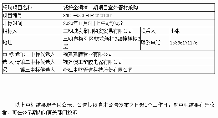三明明城国际大酒店有限公司干货食材供货商招标采购流标公示