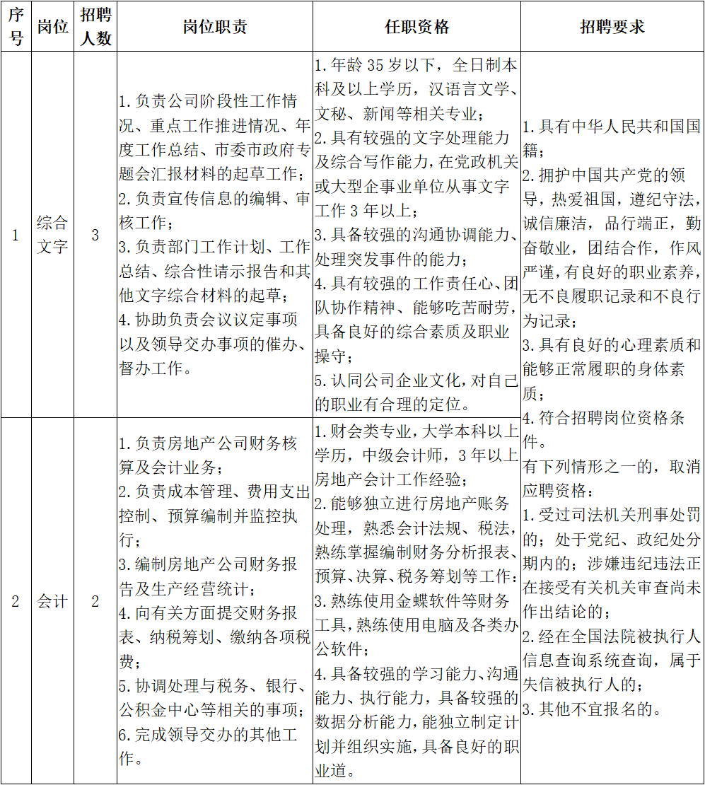 因工作需要,三明城发集团权属企业面向社会公开招聘,具体如下: