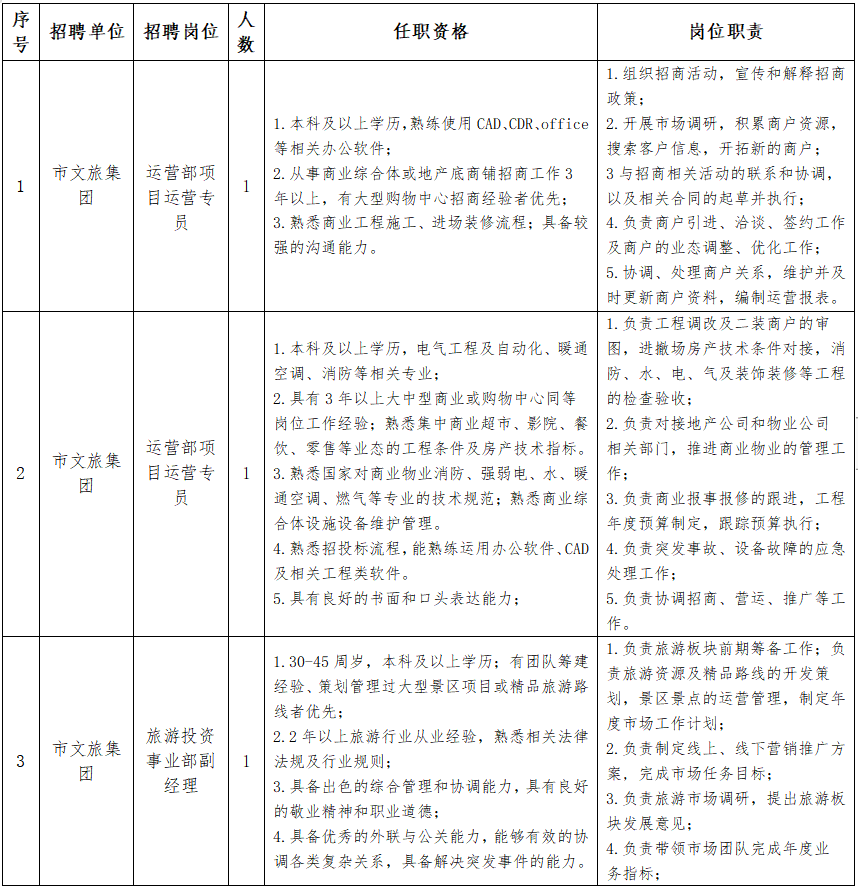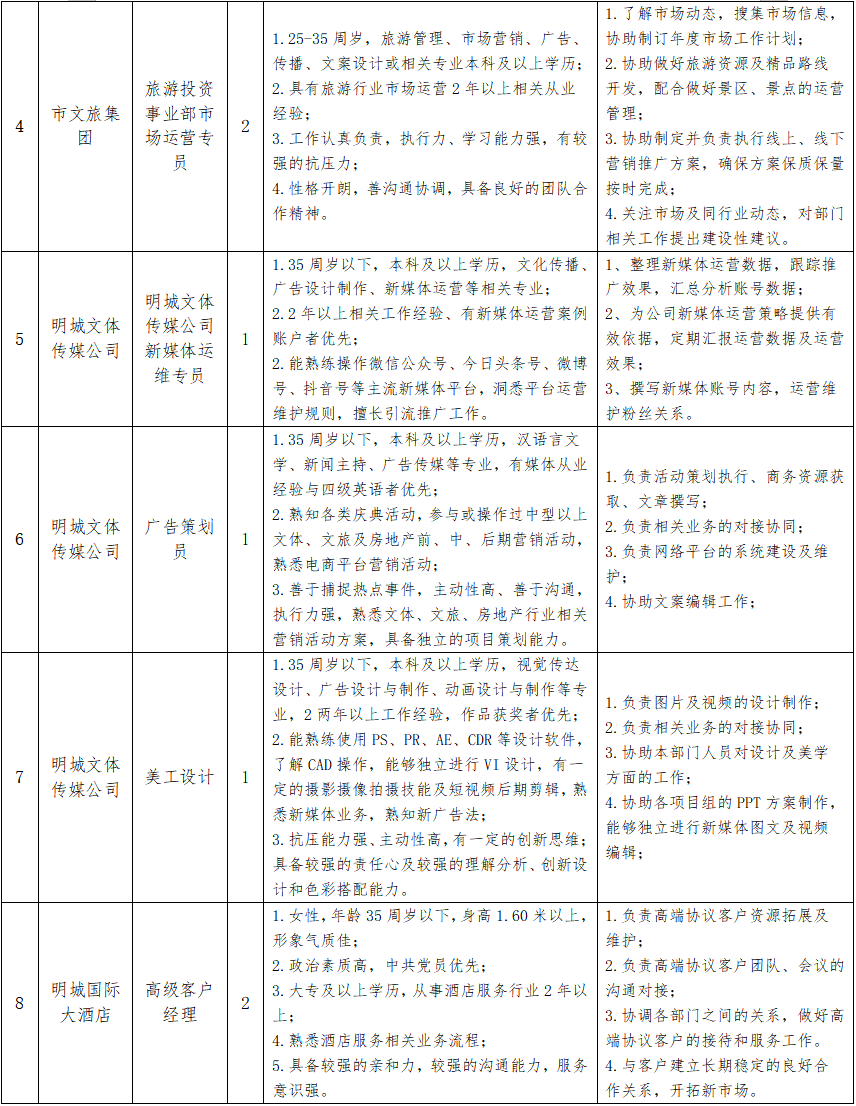 因工作需要,三明城发集团权属企业面向社会公开招聘,具体如下: